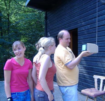 Mit Notenständern wurden Antennen gebaut und bei den Toren laut gejubelt. In der Halbzeit machten wir uns auf den Weg in das nächstgelegene Dorf, wo wir in eine Gaststätte einkehren wollten. Die erste Gruppe lief, ohne den Weg zu wissen, los, um noch rechtzeitig die zweite Halbzeit sehen zu können. Wir liefen und liefen, jubelten immer wieder vorbeifahrenden Autos zu und waren uns sicher den richtigen Weg gewählt zu haben! Als wir irgendwann, nach vielen Stürzen, mitten im Wald angekommen waren, kehrten wir wieder um, und ließen uns den Weg erklären. Als wir ankamen, war natürlich die zweite Halbzeit auch schon fast zu Ende, und die anderen auch schon alle da.