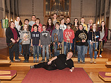 Was sind schon 2 Punkte auf dem U? (Ü), dachten sich zwei oder drei, und unterstützten als Elternteil die ca. 20 Nachwuchs- und Jungbläser aus verschiedenen Posaunenchören Südnassaus und Rheinhessens beim U26-Workshop am 13.02.2016 (dem Aschersamstag, dem Samstag nach Fasching). Im Gegensatz zum Fußball (U21 z.B.) ist das hier möglich und eine kleine Unterstützung der jungen Leute, die aber auch alleine einen tollen runden Klangkörper bildeten. LPW Johannes Kunkel studierte an diesem Workshop-Samstag ein buntes Programm ein, das zum Abschluss in einem beeindruckenden halbstündigen Konzert präsentiert wurde. Die Besucher, meist Eltern der Nachwuchsbläser, konnten sich von einer beachtlichen Workshop-Arbeit überzeugen. Bemerkenswert, was an einem Übetag mit der Gruppe zu Gehör kam, die vorher so noch nicht zusammen musiziert hatte.