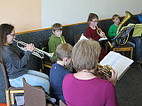 In die erste Gruppe kamen alle Kinder, die seit kurzer Zeit blasen und der Tonumfang und die Notenkenntnisse noch gering waren. In der zweiten Gruppe spielten alle, die schon längere Zeit spielen. Die fortgeschrittenen Blasenden gehörten zur 3. Gruppe.