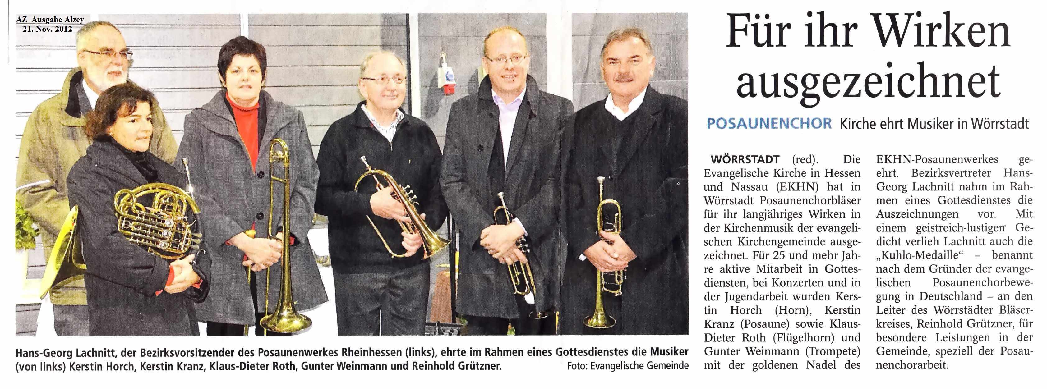 28. Oktober 2012 – Ehrungen im Bläserkreis Wörrstadt